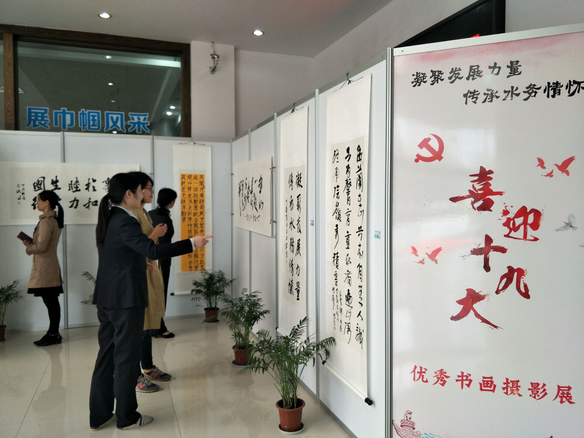 為喜迎黨的十九大召開(kāi),集團(tuán)工會(huì)、團(tuán)委聯(lián)合組織開(kāi)展了以“凝聚發(fā)展力量,傳承水務(wù)情懷”為主題的優(yōu)秀書(shū)畫(huà)攝影展,內(nèi)容積極豪邁,充分展現(xiàn)了水務(wù)人奮發(fā)進(jìn)取、勇于擔(dān)當(dāng)?shù)墓ぷ髑閼选?/font>