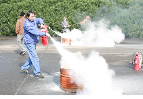 春季消防演習是水處理公司一項常規性的安全工作。其出發點是增強員工的防火意識,提高員工使用干粉滅火器的熟練度。演習以干粉滅火器近距離油類滅火為主,分為培訓和實踐兩個部分。經過簡單培訓,參與演習的人員均能根據風向合理判斷噴射干粉的科學位置,并成功實施滅火。