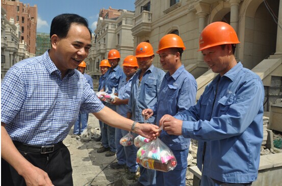 723日上午,集團公司總經理單寶子在公司董事長谷連森、總經理李葉茂等領導的陪同下,前往柯橋城區湖畔花園和漓渚鐵礦供水管網施工現場,慰問堅守崗位的一線職工,為他們送上了消暑飲料及毛巾等防暑用品,并叮囑大家在高溫酷暑下盡量錯時作業,注意做好防暑措施。